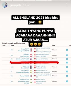 Di ajang All England, Indonesia sudah mengukir sejarah gemilang melalui deretan atlet Bulutangkis ternamanya seperti Rudi Hartono, Liem Swie King, Susi Susanti, Tontowi Ahmad/Liliyana Natsir dll. Namun pil pahit dan kekecewaan yang mendalam harus dirasakan para pemain Indonesia pada pergelaran pesta olahraga Bulutangkis yang diselenggarakan di negera Inggris tahun 2021 kali ini tersebut. Pasalnya Para atlet Bulutangkis Indonesia dipaksa mundur dari ajang tersebut dikarenakan hal yang diluar dugaan yakni para atlet Indonesia itu disinyalir ketika menaiki pesawat terbang menuju Inggris, mereka satu pesawat dengan orang yang positive covid-19.